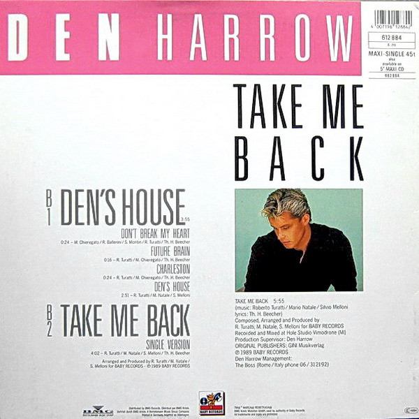 € 9.00 Media: Good Plus (G+)Hoes: Very Good (VG)Den Harrow – Take Me Back (12″, Maxi)