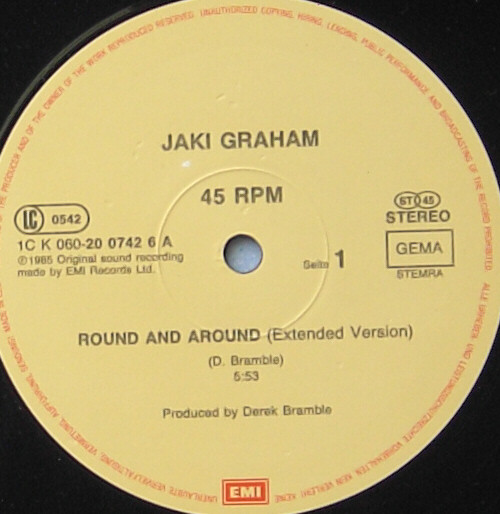€ 5.00 Media: Very Good (VG)Hoes: Very Good Plus (VG+)Jaki Graham – Round And Around (Extended Version) (12″, Maxi)