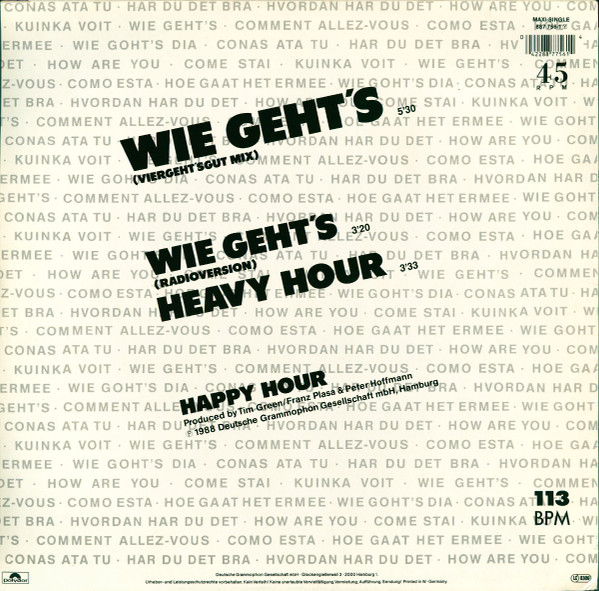 € 7.50 Media: Near Mint (NM or M-)Hoes: Very Good Plus (VG+)Happy Hour (2) – Wie Geht’s (Viergeht’sgut Mix) (12″, Maxi)