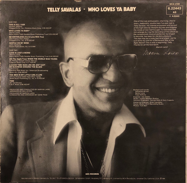 € 6.50 Media: Very Good Plus (VG+)Hoes: Very Good Plus (VG+)Telly Savalas – Who Loves Ya Baby (LP, Album)