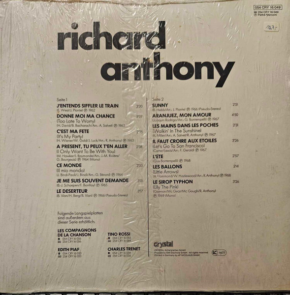 € 14.50 Media: Near Mint (NM or M-)Hoes: Very Good Plus (VG+)Richard Anthony (2) – Les Grandes Chansons (LP, Comp)