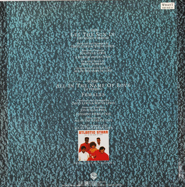 € 7.50 Media: Very Good Plus (VG+)Hoes: Very Good Plus (VG+)Atlantic Starr – Let The Sun In (Extended Version) (12″)