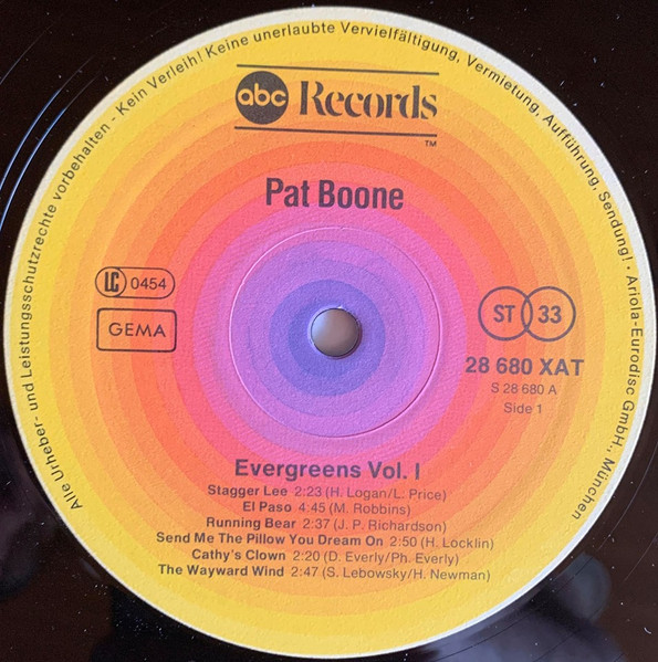 € 5.00 Media: Good Plus (G+)Hoes: Good Plus (G+)Pat Boone – Evergreens Vol.1 (LP, Comp)