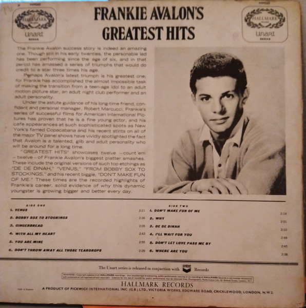 € 6.50 Media: Very Good Plus (VG+)Hoes: Very Good (VG)Frankie Avalon – Frankie Avalon’s Greatest Hits (LP, Comp)