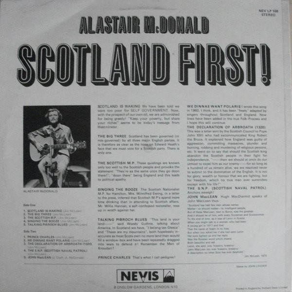 € 6.50 Media: Very Good Plus (VG+)Hoes: Very Good (VG)Alastair McDonald – Scotland First (LP, Album)