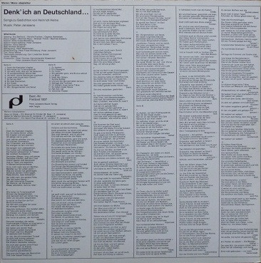 € 7.50 Media: Near Mint (NM or M-)Hoes: Very Good Plus (VG+)Peter Janssens – Denk’ Ich An Deutschland … (LP, Album)