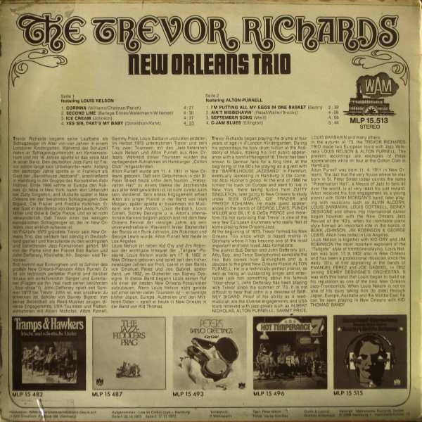 € 7.50 Media: Near Mint (NM or M-)Hoes: Very Good Plus (VG+)The Trevor Richards New Orleans Trio, Louis Nelson (2), Alton Purnell – The Trevor Richards New Orleans Trio Featuring Louis Nelson / Alton Purnell (LP, Album)