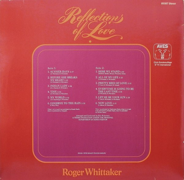 € 7.50 Media: Near Mint (NM or M-)Hoes: Very Good Plus (VG+)Roger Whittaker – Reflections Of Love (LP, Album, Club)