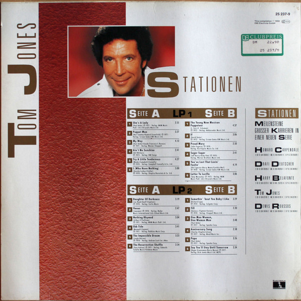 € 6.50 Media: Very Good (VG)Hoes: Very Good Plus (VG+)Tom Jones – Stationen (2xLP, Comp, Club, DMM)