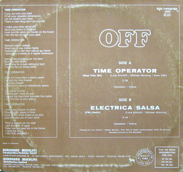 € 6.50 Media: Very Good Plus (VG+)Hoes: Very Good Plus (VG+)Off – Time Operator (12″, Maxi)