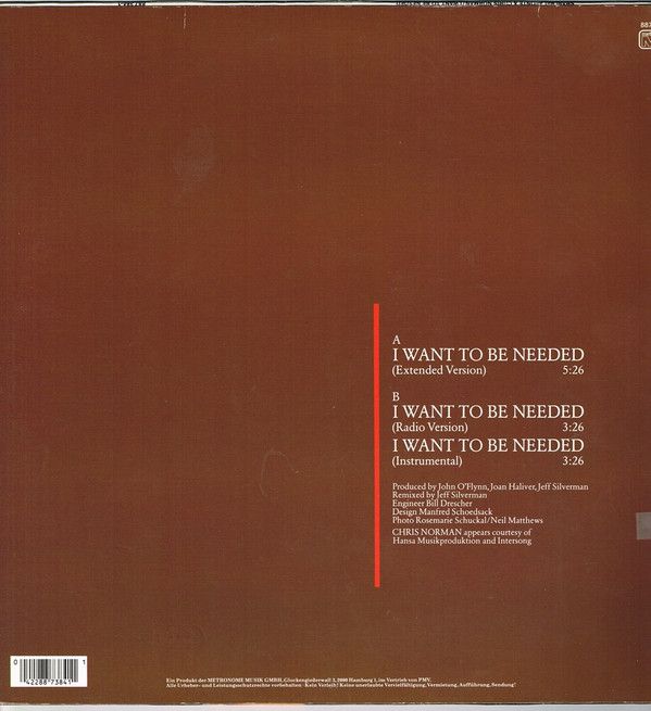 € 12.50 Media: Near Mint (NM or M-)Hoes: Very Good Plus (VG+)Shari Belafonte + Chris Norman – I Want To Be Needed (12″, Maxi)
