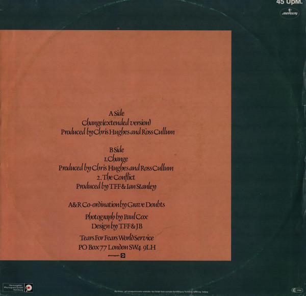 € 21.50 Media: Very Good Plus (VG+)Hoes: Very Good Plus (VG+)Tears For Fears – Change (12″, Maxi)