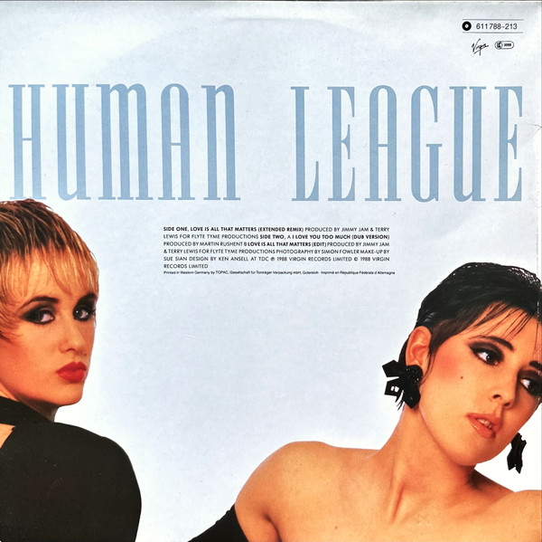 € 6.50 Media: Very Good Plus (VG+)Hoes: Very Good Plus (VG+)The Human League – Love Is All That Matters (Extended Remix) (12″, Single)