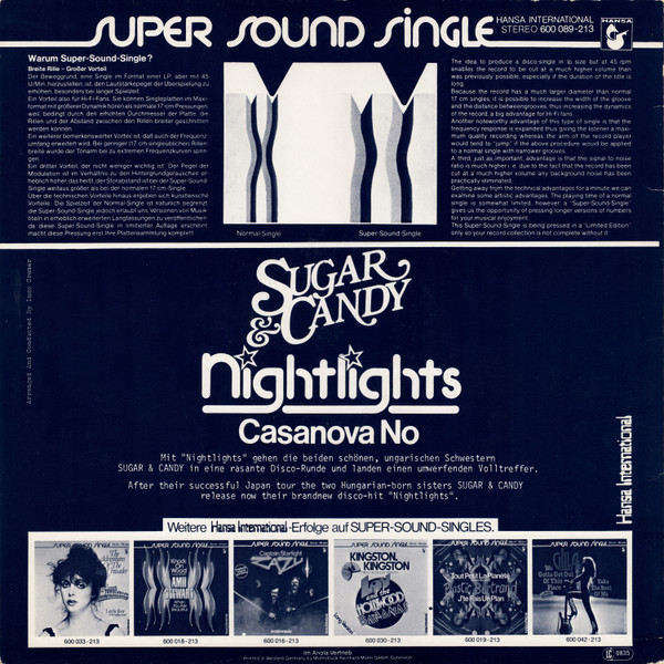 € 6.50 Media: Very Good Plus (VG+)Hoes: Very Good Plus (VG+)Sugar & Candy – Nightlights (Long Version) (12″, Single, Ltd, Sup)