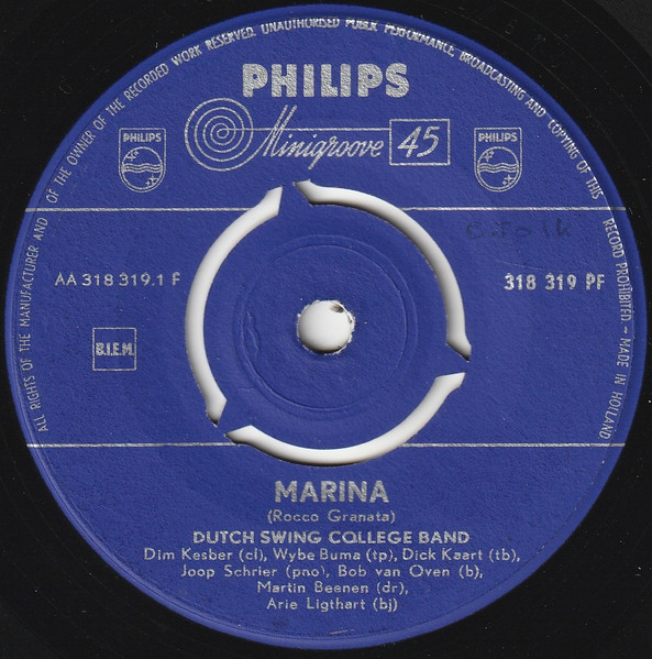 € 3.00 Media: Good Plus (G+)Hoes: Very Good Plus (VG+)The Dutch Swing College Band – Marina / Tennessee Waltz Rock (7″, Single, Mono)