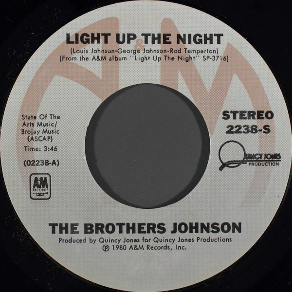 € 6.50 Media: Very Good Plus (VG+)Hoes: Very Good Plus (VG+)Brothers Johnson – Light Up The Night (7″, Single, Pit)