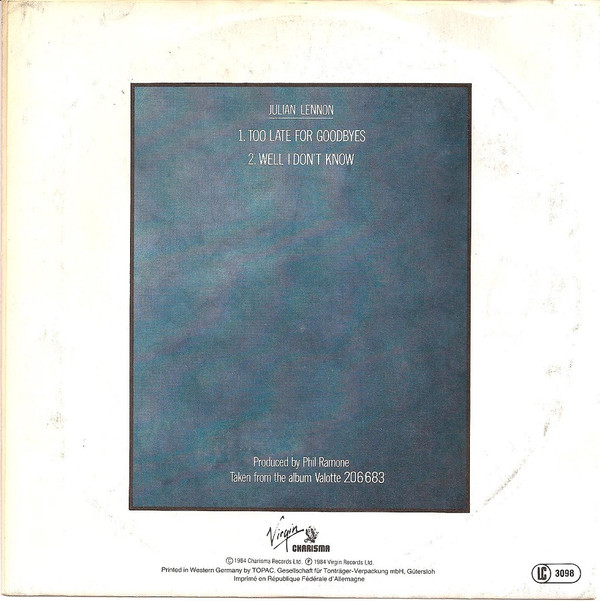 € 3.00 Media: Good Plus (G+)Julian Lennon – Too Late For Goodbyes (7″, Single)