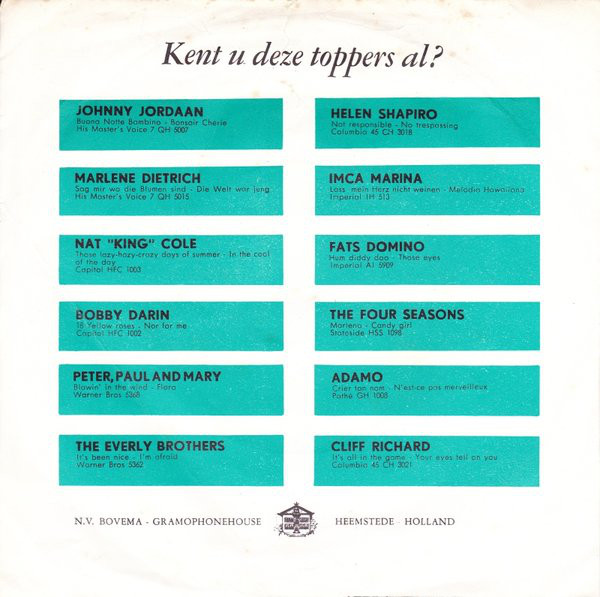 € 14.50 Media: Very Good Plus (VG+)Hoes: Very Good Plus (VG+)De Agjas En The Fellow Foons – Marina (7″, Single)