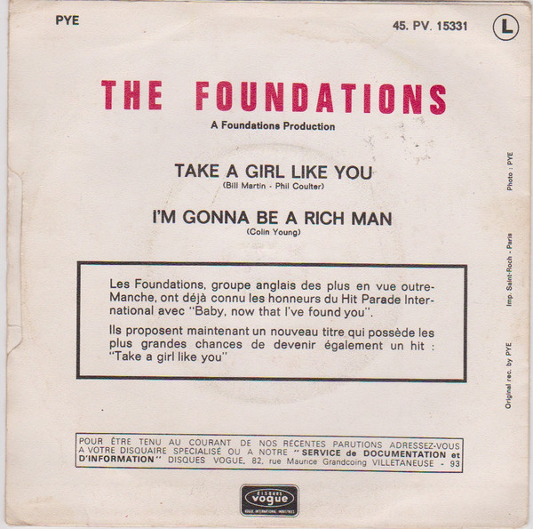 € 4.00 Media: Very Good Plus (VG+)The Foundations – Take A Girl Like You (7″)
