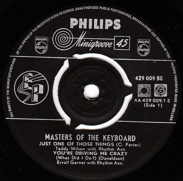€ 3.00 Media: Very Good (VG)Hoes: Very Good Plus (VG+)Erroll Garner Trio – Erroll Garner (7″, EP)