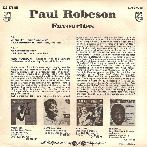 € 5.00 Media: Very Good (VG)Hoes: Very Good Plus (VG+)Paul Robeson – Favourites (7″, EP)