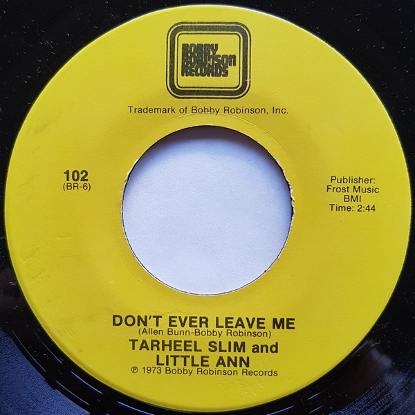 € 3.00 Media: Very Good (VG)Hoes: Very Good Plus (VG+)Tarheel Slim And Little Ann* – Don’t Ever Leave Me / It’s Too Late (7″, Single)