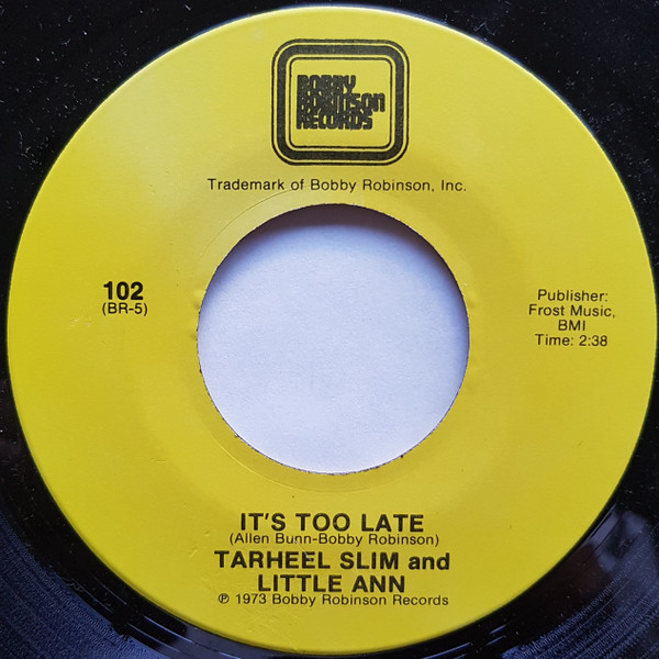 € 3.00 Media: Very Good (VG)Hoes: Very Good Plus (VG+)Tarheel Slim & Little Ann – Don’t Ever Leave Me / It’s Too Late (7″, Single)