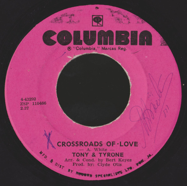 € 5.00 Media: Very Good Plus (VG+)Tony & Tyrone – Cross Roads Of Love / A Fool Am I (7″)