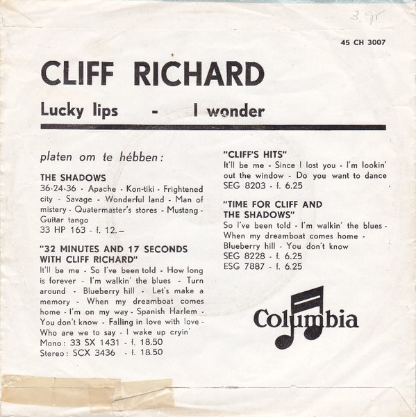 € 3.00 Media: Good Plus (G+)Cliff Richard & The Shadows – The Next Time / Bachelor Boy (7″, Single)