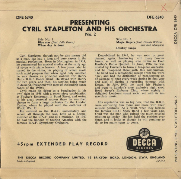 € 3.00 Media: Good Plus (G+)Cyril Stapleton And His Orchestra – No. 2 (7″, EP)