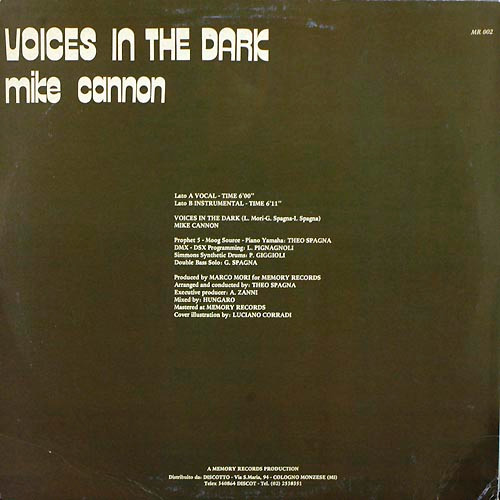 € 6.50 Media: Very Good (VG)Hoes: Very Good (VG)Mike Cannon – Voices In The Dark (12″)