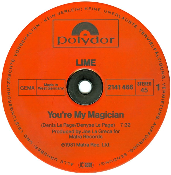 € 5.00 Media: Very Good (VG)Hoes: Very Good Plus (VG+)Lime (2) – You’re My Magician / I’ll Be Yours (12″, Maxi)