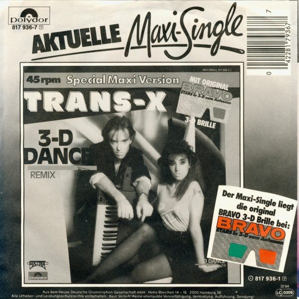 € 1.00 Media: Very Good (VG)Hoes: Very Good Plus (VG+)Trans-X – 3-D Dance (Remix) (7″, Single)