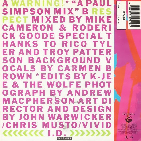 € 1.00 Media: Good Plus (G+)Hoes: Very Good Plus (VG+)Adeva – Respect (7″, Single)