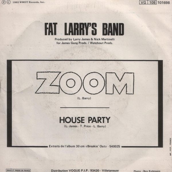 € 1.50 Media: Very Good (VG)Hoes: Very Good (VG)Fat Larry’s Band – Zoom (7″, Single)