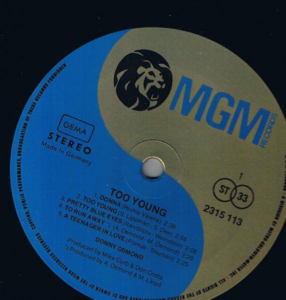 € 6.50 Media: Very Good Plus (VG+)Hoes: Very Good Plus (VG+)Donny Osmond – Too Young (LP, Album)