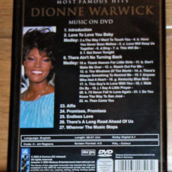 € 17.50 Media: Near Mint (NM or M-)Hoes: Near Mint (NM or M-)Dionne Warwick – Most Famous Hits – The Lady – Live (DVD-V, PAL)