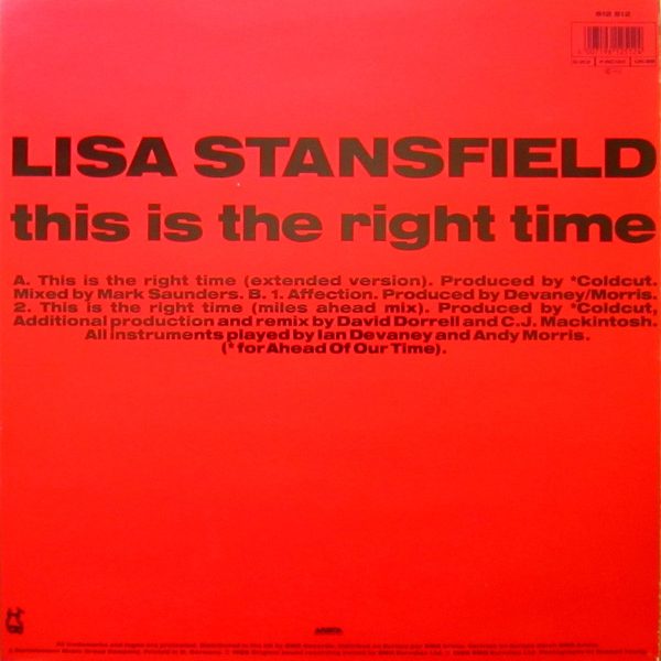 € 6.50 Media: Very Good Plus (VG+)Hoes: Very Good Plus (VG+)Lisa Stansfield – This Is The Right Time (12″, Maxi)