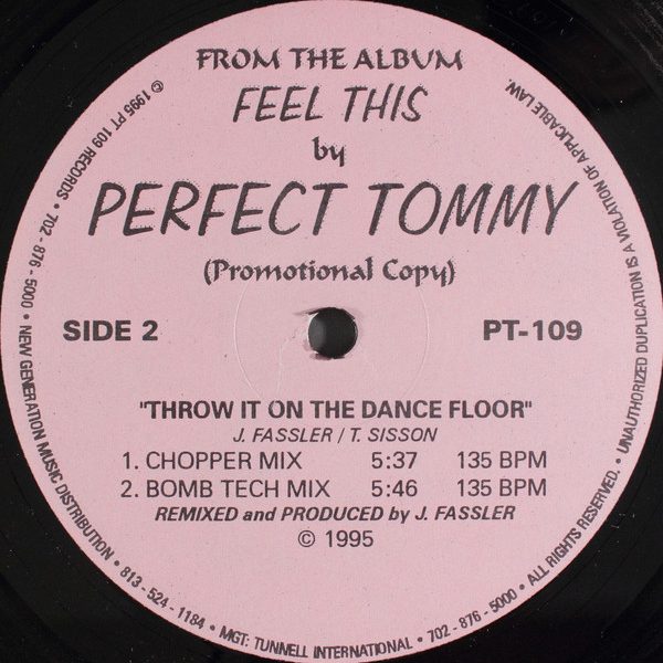 € 3.50 Media: Good (G)Hoes: Very Good Plus (VG+)Perfect Tommy – Throw It On The Dance Floor (12″, Promo)