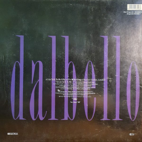 € 3.50 Media: Very Good (VG)Hoes: Very Good Plus (VG+)Dalbello* – Talk To Me (12″, Maxi)