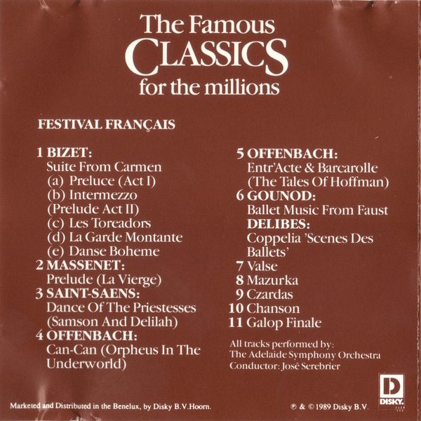 € 5.00 Media: Good Plus (G+)Hoes: Very Good (VG)Adelaide Symphony Orchestra – The Famous Classics For Tthe Millions Volume 4 (CD, Album, RE)
