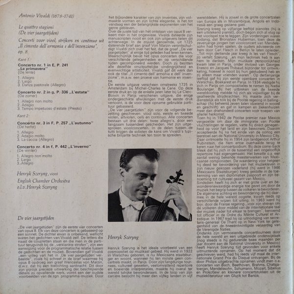 € 10.00 Media: Very Good Plus (VG+)Hoes: Very Good (VG)Antonio Vivaldi – English Chamber Orchestra, Henryk Szeryng – De Vier Jaargetijden (LP, Gat)