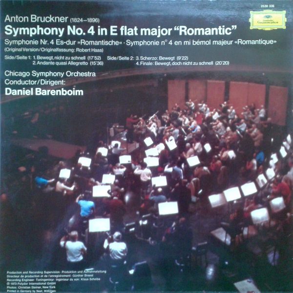 € 6.50 Media: Very Good Plus (VG+)Hoes: Very Good Plus (VG+)Anton Bruckner, Chicago Symphony Orchestra ∙ Daniel Barenboim – Symphonie Nr.4 »Romantische« = Symphony No.4 »Romantic« (LP, Album)