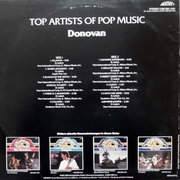 € 7.00 Media: Very Good Plus (VG+)Hoes: Very Good Plus (VG+)Donovan – Top Artists Of Pop Music (LP, Comp)