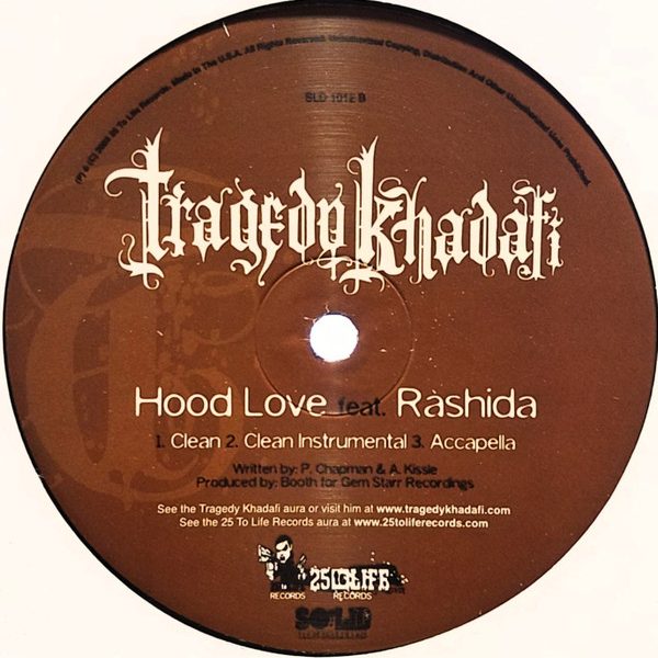 € 7.50 Media: Very Good Plus (VG+)Hoes: Very Good (VG)Tragedy Khadafi – Hood / Hood Love (12″, Promo)