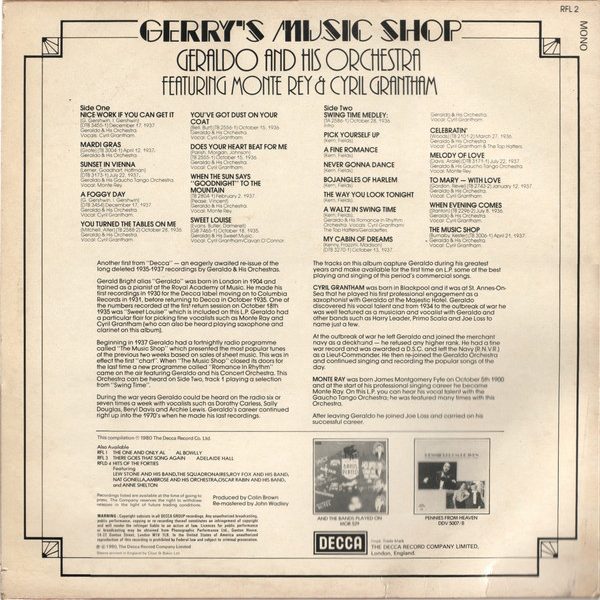 € 7.50 Media: Near Mint (NM or M-)Hoes: Very Good Plus (VG+)Geraldo And His Orchestra Featuring Monte Rey & Cyril Grantham – Gerry’s Music Shop (LP, Comp, Mono)