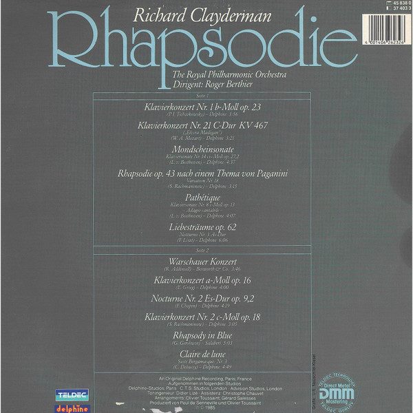 € 4.50 Media: Very Good (VG)Hoes: Very Good Plus (VG+)Richard Clayderman / The Royal Philharmonic Orchestra* – Rhapsodie (LP, Album, Club)