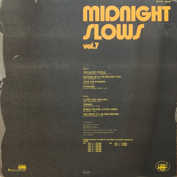 € 39.50 Media: Very Good Plus (VG+)Hoes: Very Good Plus (VG+)Milt Buckner / Guy Lafitte / Sam Woodyard – Midnight Slows Vol.7 (LP, Album)
