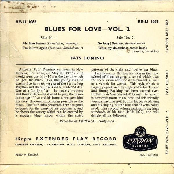 € 14.50 Media: Very Good (VG)Fats Domino – Blues For Love -Vol. 2 (7″, EP)