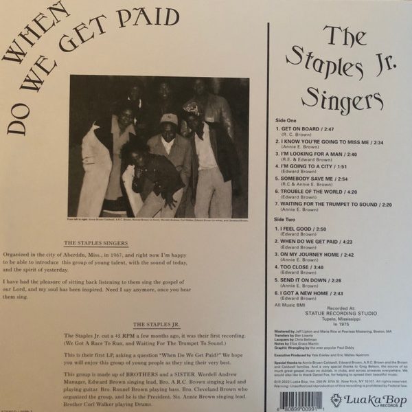 € 35.50 Media: Mint (M)Hoes: Mint (M)The Staples Jr. Singers* – When Do We Get Paid (LP, Album, RE)